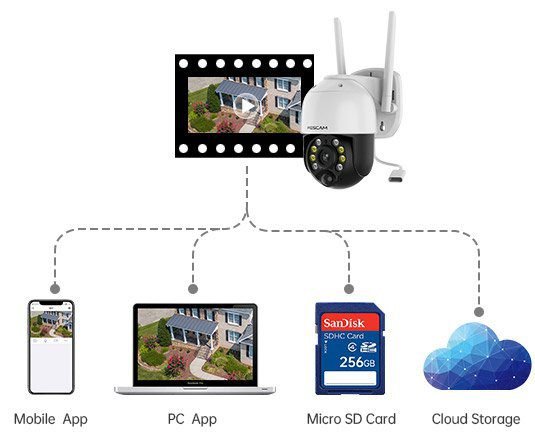 Ugrađeni mikrofon i zvučnik omogućavaju razgovor s osobama u vidnom polju direktno putem telefona – idealno za nadzor ulaznih vrata ili dvorišta. Snimci se pohranjuju lokalno na MicroSD kartici do 256GB bez obaveznih cloud pretplata. Instalacija je jednostavna – zabijte nosač na željeno mjesto, usmjerite solarni panel prema suncu i povežite na WiFi putem aplikacije.