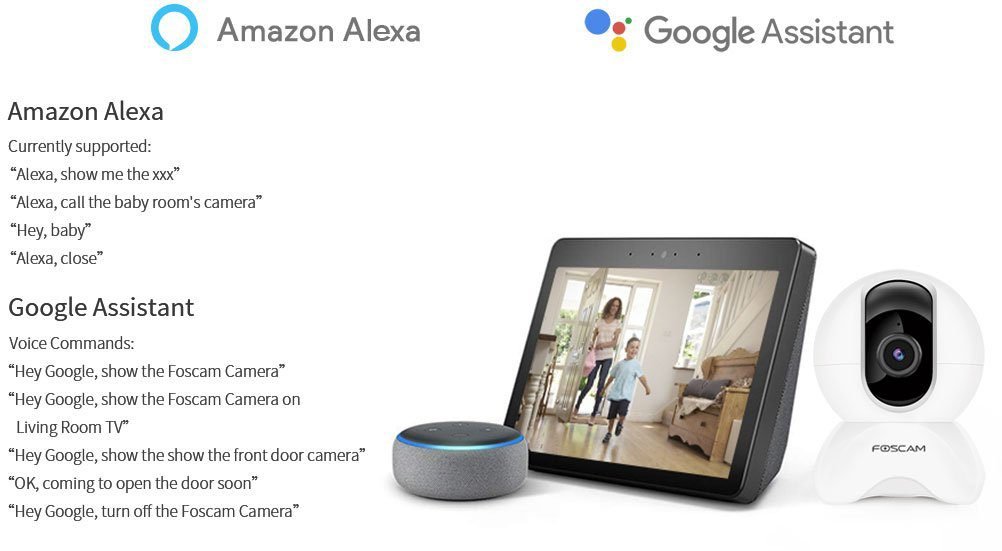 Snimci se pohranjuju lokalno na MicroSD kartici do 128GB – nema obaveznih pretplata za cloud. Kamera je kompatibilna s Amazon Alexa i Google Assistant glasovnim komandama, a putem P2P veze lako je povežete na Foscam aplikaciju bez složene konfiguracije mreže. Jednostavno, sigurno i pouzdano.
