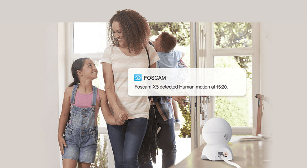 Foscam X5 koristi AI tehnologiju prepoznavanja ljudi koja razlikuje ljude od kućnih ljubimaca, insekata i pomičnih predmeta. Nema više lažnih alarma zbog mačke koja prolazi ili grane na vjetru – dobijate obavijest samo kada kamera detektuje osobu. Dodatno, kamera reaguje i na detekciju zvuka za još širi nadzor.