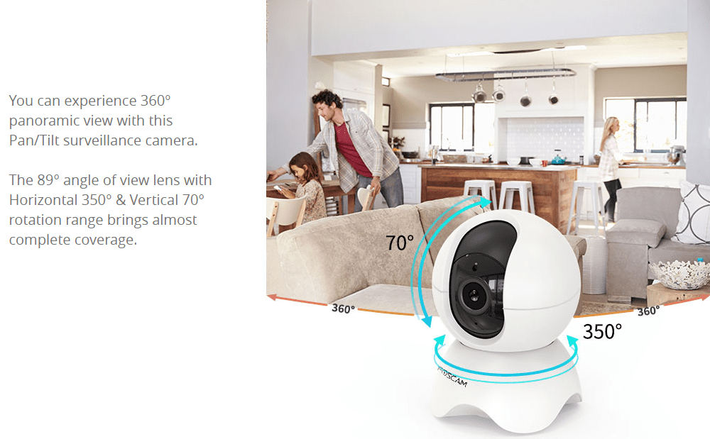 Horizontalna rotacija od 350° i vertikalna od 70° omogućavaju praktično kompletno pokrivanje prostorije jednom kamerom. Kamerom upravljate direktno iz aplikacije – lijevim-desnim i gore-dolje pokretima pratite kretanje ili usmjeravate pogled gdje trebate. Nema slijepih tačaka, nema skrivenih uglova.