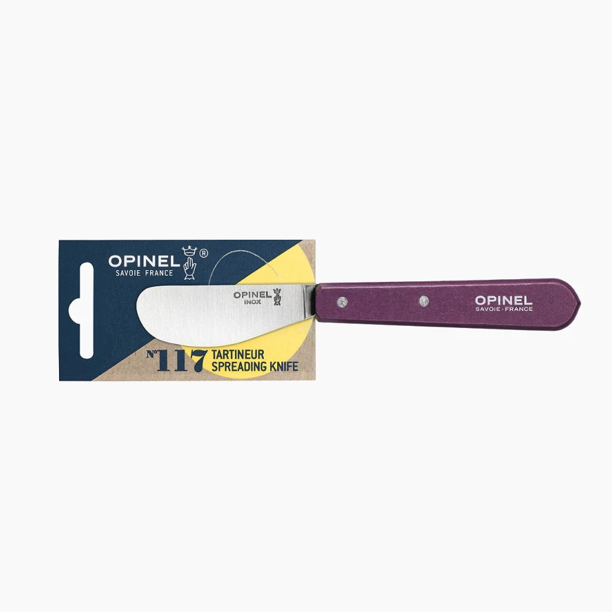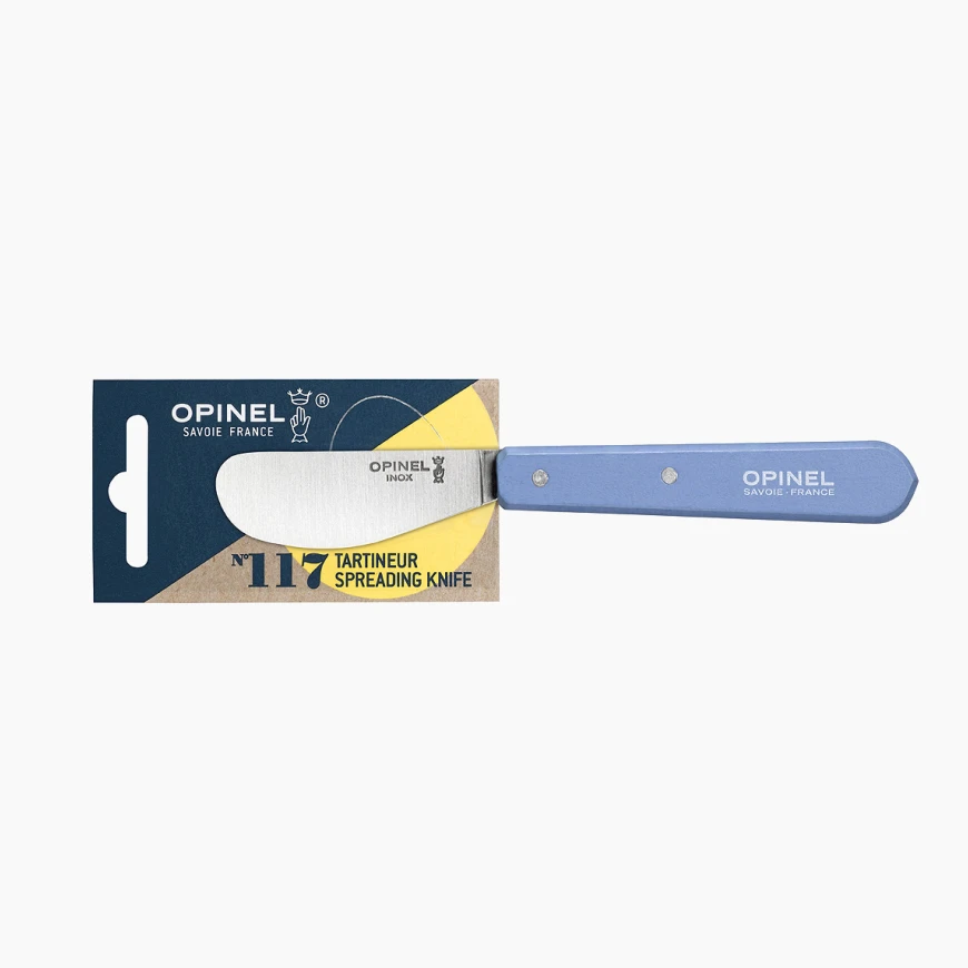 Opinel N°117 nož za razmazivanje sjajan je dodatak svakom stolu, posebno kada se servira sir, prsut ili razni namazi. Može se kombinovati sa drugim Opinelom noževima za sir u kompletni set za degustaciju. Jednostavan, funkcionalan i estetski dojmljiv — tipičan Opinel.