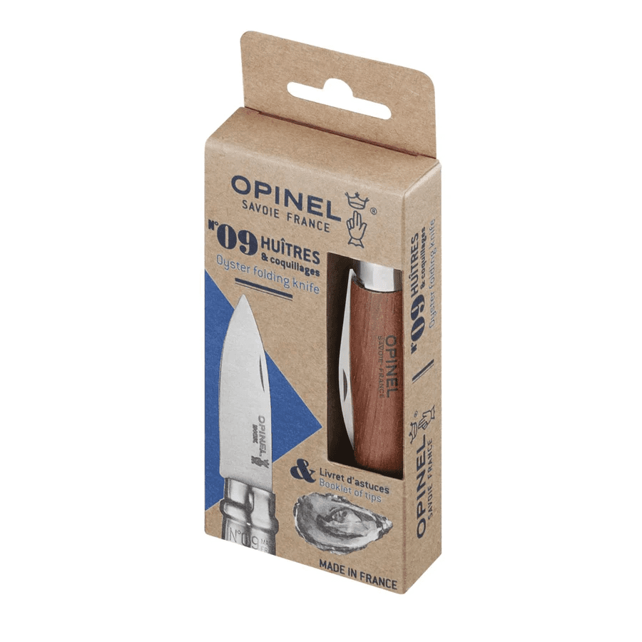 Opinel N°9 Oyster specijalizovani je nož za otvaranje ostriga, dizajniran za ljubitelje morskih plodova koji žele pravi alat za ovu delikatnu operaciju. Kratka, čvrsta i masivna ostrica idealna je za sigurno i efikasno otvaranje ostriga bez rizika od ozljede.
