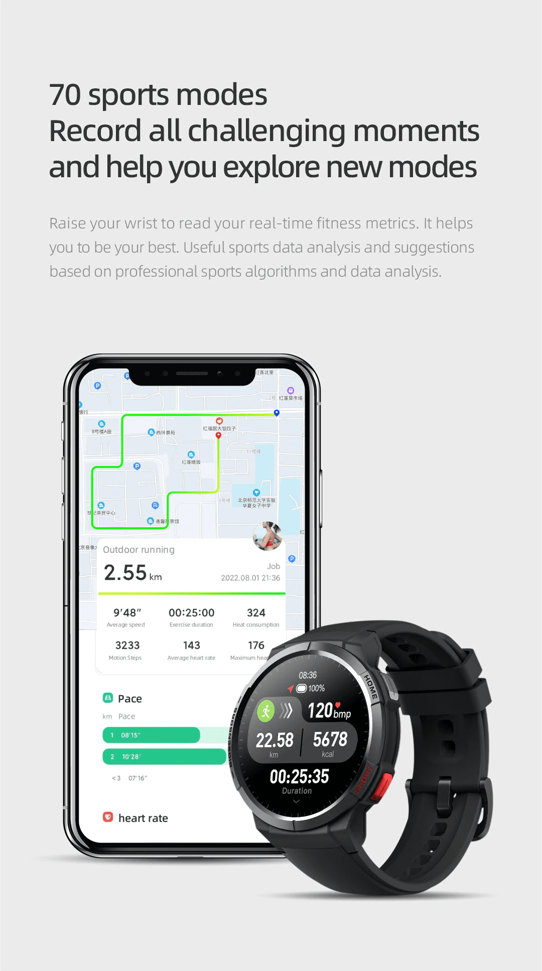 S ugrađenim GPS i GNSS sistemom, ne trebaš nositi telefon na treningu. Sat samostalno bilježi tačnu rutu, brzinu i udaljenost – savršeno za trkače, planinare i bicikliste koji žele slobodu pokreta.